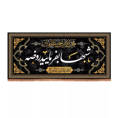 پرچم رومیزی باز مدل کتیبه عزاداری طرح آجرک الله یا صاحب الزمان شبها بفرمایید روضه کد 40002508