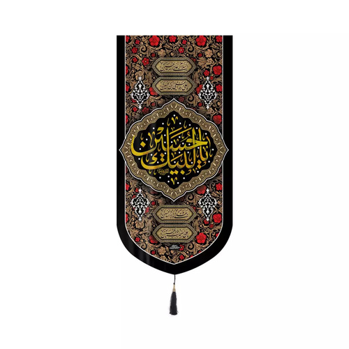 پرچم رومیزی باز مدل کتیبه محرم طرح گلستان لبیک یا حسین کد 40002440