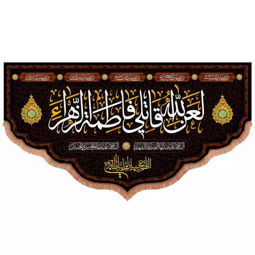 پرچم رومیزی باز مدل کتیبه پشت منبری فاطمیه طرح لعن الله قاتلی فاطمه الزهرا سلام الله علیها کد 10001670