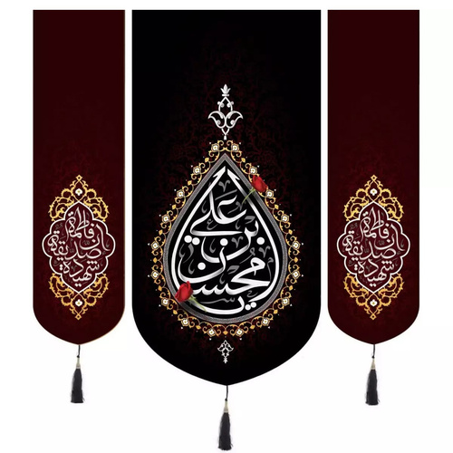 پرچم رومیزی باز مدل کتیبه فاطمیه طرح یا محسن بن علی و ان فاطمه صدیقه شهیده کد 10001552 مجموعه سه عددی