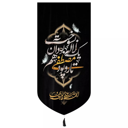 پرچم رومیزی باز مدل کتیبه فاطمیه طرح تار و پود مصطفی یک لاله بود آن هم بسوخت کد 1000964